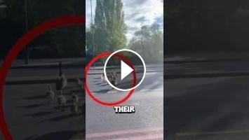 All the cars stopped when this brave goose family crossed the road ❤️ #goose