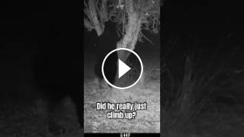 Unbelievable big black bear climbs tree for apples! ????