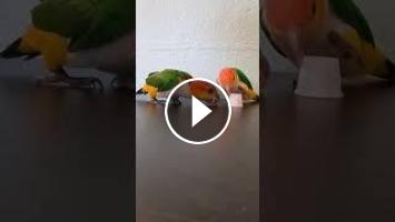 Ophelia found an alternative way to obtain the nut. #fyp #funny #steal #thief #birds #cute #caique #shorts #animals #funnyanimals...
