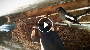 Oriental magpie-robin Birds-Mother feeds baby Take care of the baby in nest #3 [ Review Bird Nest ]