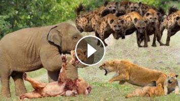 Aggressive Elephants And Hyenas Tortured The lion's Family To Death To Avenge The Calf