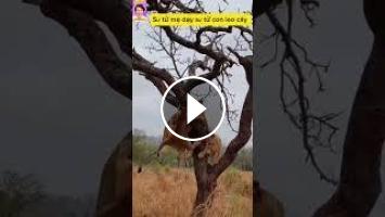 Sư tử mẹ dạy sư tử con leo cây và cái kết #shotest #video