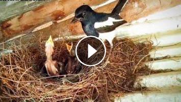 Oriental magpie-robin Birds-Mother feeds baby Take care of the baby in nest #7 [ Review Bird Nest ]