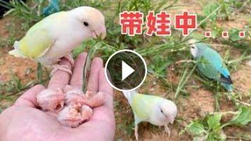 老三孵出了三只小鹦鹉,太可爱了,让老四帮忙带娃!