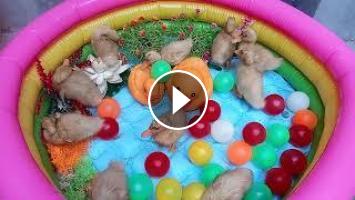 Beautiful Ducklings play with Rainbow Colorful Surprise Balls,Colorful Surprise Balls,