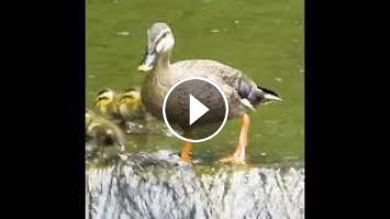 カルガモ親子の引っ越し!川を下る赤ちゃんカモたち。急すぎる段差で降りるのはやっぱり怖い!でも、母が繰り返し教えてくれた。