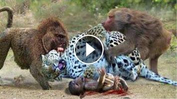 Crazy Moments! Angry Baboon Herd Attacks Crazy Leopard To Rescue Baby Baboon From The Hunt