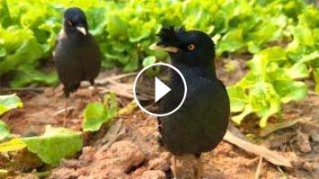 两只野八哥飞来打架,走地鸡被按在地上,看到就想笑