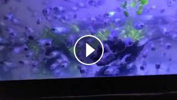 Ce sont ses jeunes blue electrique acara reproduit par moi. Maintenenant ils mesurent plus ou moins 1-1/2. ils mangent de tous, granule, flocon et con...