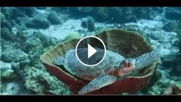 Sea turtles swimming in coral reefs.