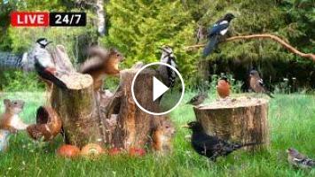 TV for cats, dogs, parrots, budgies and all nature lovers. Non-stop streaming of little birds and Eurasian Red Squirrels.