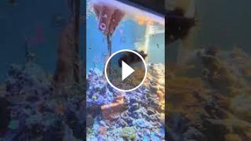 Feeding My Puffer Large Shrimp HUGE Outdoor Saltwater Tank