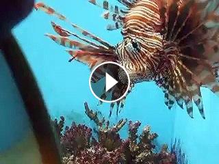 The Lion fish VS mirror in the Aquarium Video sea water marine deep sea...