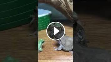 ピンセットでおいしそうなコオロギを誰かが食べている様子を、遠目で見ていたアゴ風船のもぐら(^^)