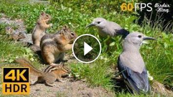 Birds and squirrels in the video: