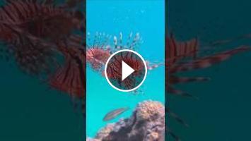 Lion Fish, the lionfish preys on a coral reef protected by its long venomous spines. Graceful and beautiful, this fish can move with astonishing speed to catch its prey.