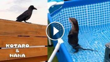 以前にも動画に登場したことがあるカラスのカースケが、また最近カワウソ達のもとを訪れるようになりました。前回一度だけ地面に降り立ったことがあるカースケですが、突然飛び出してきたコタハナズにビビって以来手すりから降りてこなくなりました。お互いにこの距離感がちょうどいいのかもしれません。それにしてもカースケ真っ黒でマジ暑そうなのでコタハナいない時にこっそりプール入ってもいいよ。