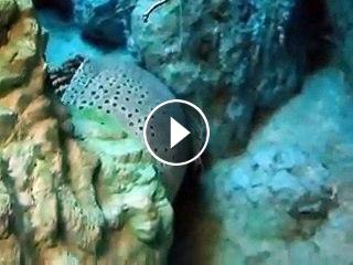The giant eel and prawn in the Aquarium Video sea water marine deep sea...