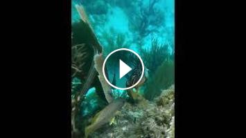2 parrotfish 1 queen angelfish on coral reef #underwater #reef #coralreef #angelfish #parrotfish