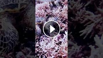Sea Turtle Diving Down, Part 2 What’s he eating around the base of the coral? #seaturtles #seaturtle