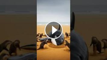 Gaint orca found by ottores on golden sand at sea edge which was unconscious