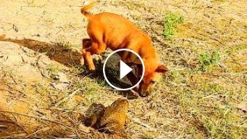 Comenly Puppy so surprise when meet bullfrog