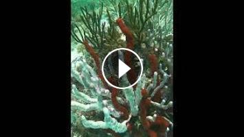 Reefscape of colors of coral on bottom of coral reef, including rope corals....