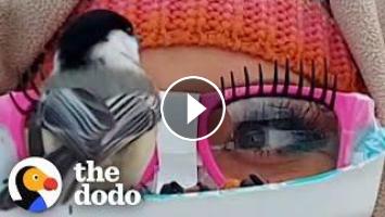 Woman is obsessed with birds and disguises herself as a bird feeder to get close to them. Her dream is to "catch" every species of backyard bird on her face, but can she "catch" a Northern cardinal?