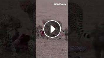 A mother cheetah is blocking and protecting baby cheetahs against a hyena's attacks. #shorts #hyena