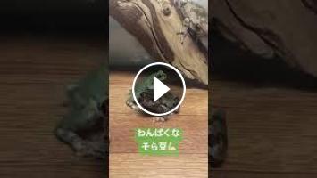 飼育アマガエルのぷくちゃんとそら豆が、仲良く二人で鳴く姿をとらえました♪