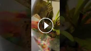 my #gubby has #fry in a #fishbowl #nofilter together with #dwarfcrayfish