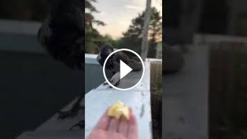 #crow #birds #bekind Hand Feeding Kräri with scrambled eggs. He loves it :-)...