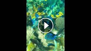 Snorkeling past a beautiful coral I see a school of blue tang on the coral reef....