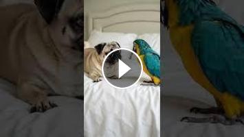 You Won't Believe the Reaction of a Pug and Parrot Meeting for the First Time! ????????????