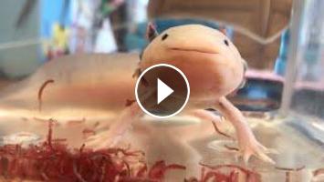ウーパールーパーのこーちゃん、お食事中です。大量にご飯の赤虫を吸い込んで一旦静止します(笑)そしてまたガバっと吸い込みます。こーちゃん、最後にとっておきのウィンクをしてくれます。