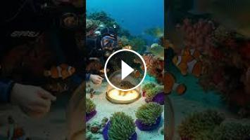 Watch a hamster's first incredible underwater adventure! ???? The tiny animal explores a vibrant coral reef inside a special transparent dome, observing many different types of fish and other sea life. See how the hamster reacts to the aquarium environment and the animals around it.