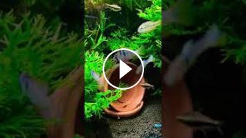 #Shorts Pair of young German Blue Ram cichlids play a game of Follow Me in the Aquarium....