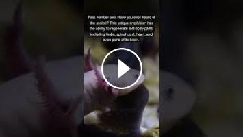 Fact number two: Have you ever heard of the axolotl? This unique amphibian has the ability to regenerate lost body parts, including limbs, spinal cord, heart, and even parts of its brain. Scientists are studying the axolotl to unlock the secrets of regeneration in humans.