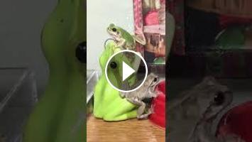 飼育アマガエルたちに新しいセットでエサやりをしました!視聴者の方からAmazonギフトで頂いた、カエルのペン立て(歯ブラシ立て)を水槽内に設置して給餌しました????