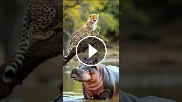???? Crocodile Attacks Cheetah Cub... Then Hippo Saves the Day! | Wild Animal Fight #shorts