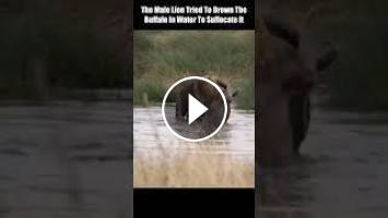 The Male Lion Tried To Drown The Buffalo In Water To Suffocate It