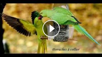 Un beau six minutes avec Perruches à collier, Sittelles torchepots, Mésanges huppées, Écureuils roux, Mésanges charbonnières, Rouge-gorge.