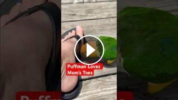 Puffman Caique Loves Mom’s Toes???? #parrots #birds #caique #petbirds