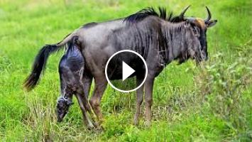 Due to blood loss and other scents, an important first step in motherhood for wildebeests is to clean the calf. By doing so, it reduces the chances of predators detecting the vulnerable pair.