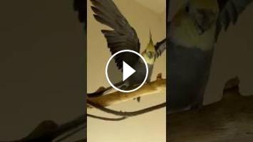 CUTE COCKATIEL BATHING IN THE RAIN