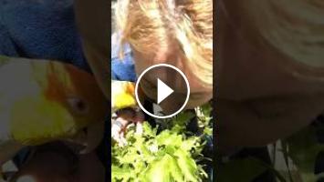 I am teaching Puffman how to forage in the garden! In the wild, parrots learn everything from their parents! In captivity, our birds rely on us to teach them everything, including how to play with toys and forage for food. Today, I am teaching Puffman how to forage for arugula. ????Always ensure what you are feeding your parrots outside is clean and safe to eat!