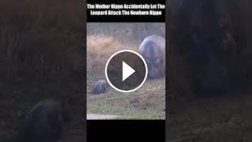 The Mother Hippo Accidentally Let The Leopard Attack The Newborn Hippo.