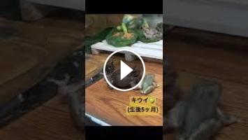 ちかごろ、巨大アマガエルの豆太郎ちゃんと、0歳児の子ガエル軍団(キウイ・ごまちゃん)の間で、コオロギを巡るこぜりあいが度々起きていました。