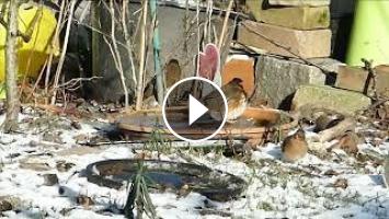 Montage de différentes séquences, au jardin, des oiseaux qui fréquentent le point d'eau.