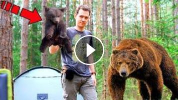 Ранним утром житель одной из таёжных деревень отправился со спиннингом порыбачить в прохладных водах местной реки. Светило солнце и стояла прекрасная погода. В садке рыбака уже плескалась пару форелей и хариусов, когда на берегу вдруг показалась медведица с медвежонком.